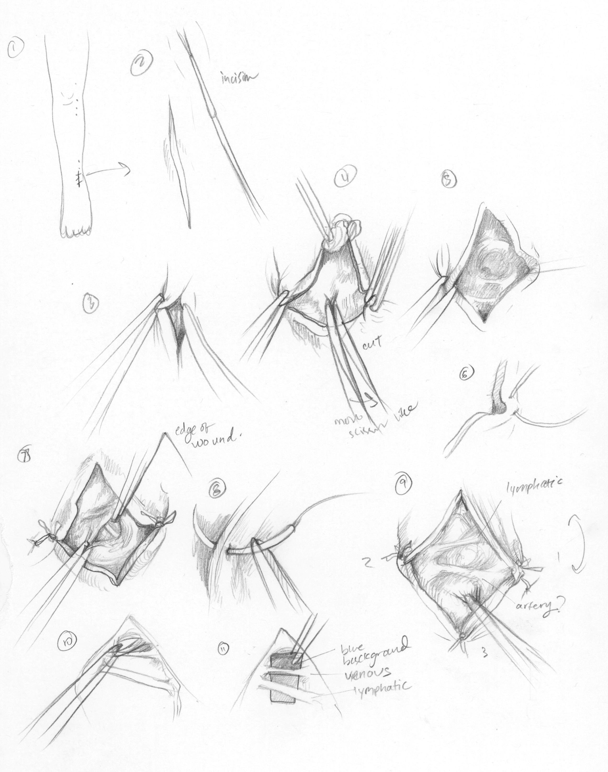 - Discuss observations and sketches with faculty using appropriate surgical terms